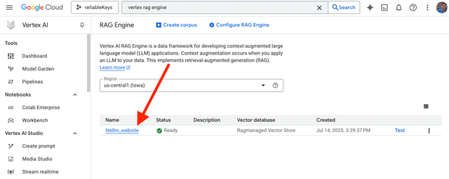 - Navigate to your RAG Engine Corpus in the Google Cloud Console
